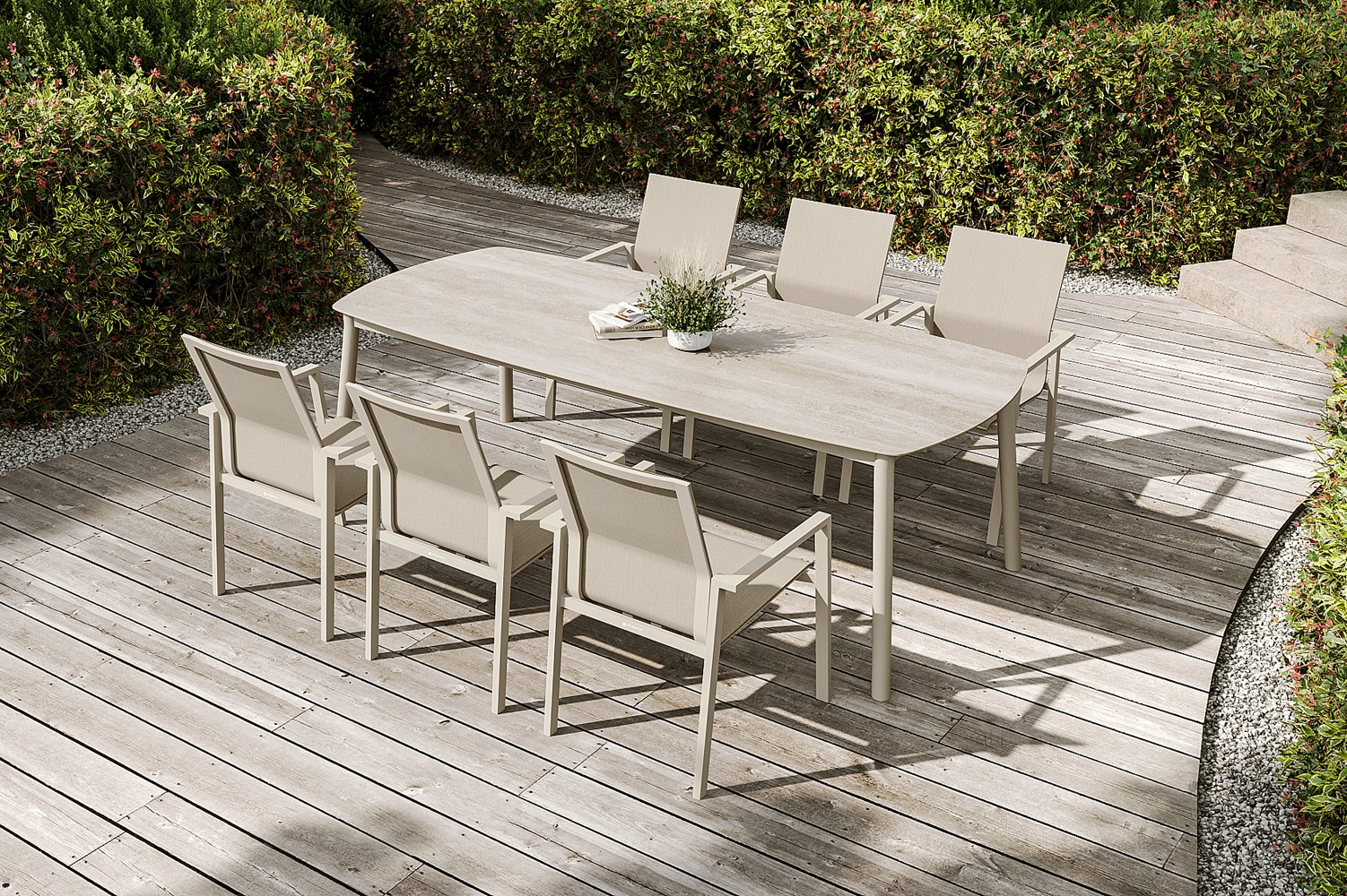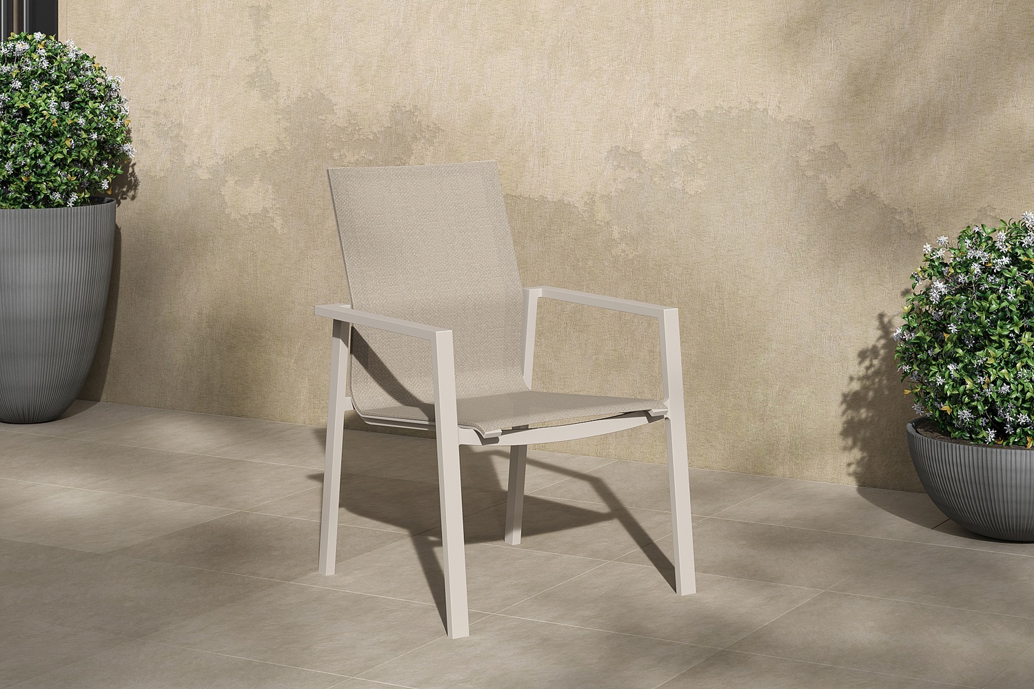 De stoel wordt geleverd met Serge Ferrari Batylene voor dat extra beetje luxe en comfort.