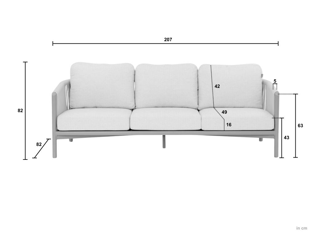 Afmetingen Bora Bora 3-zits sofa: